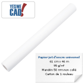 Yeswecad.com vous propose des bobines de papiers pour votre traceur de différents formats 297 mm, A3, 340 mm, 420 mm, A2, 432 mm, 17", 594 mm, A1, 610 mm, 24", 841 mm, A0, 914 mm, 36", 1067 mm, 42", 1118 mm, 44", 1270 mm, 50", 1372 mm, 54" et 1524 mm, 60" et de différents grammages 80 g/m², 90 g/m², 120 g/m² et 140 g/m², 190 g/m² et 200 g/m², 240 g/m², 250 g/m² et 260 g/m² et une large gamme de 390 g/m² jusqu'au 495 g/m².